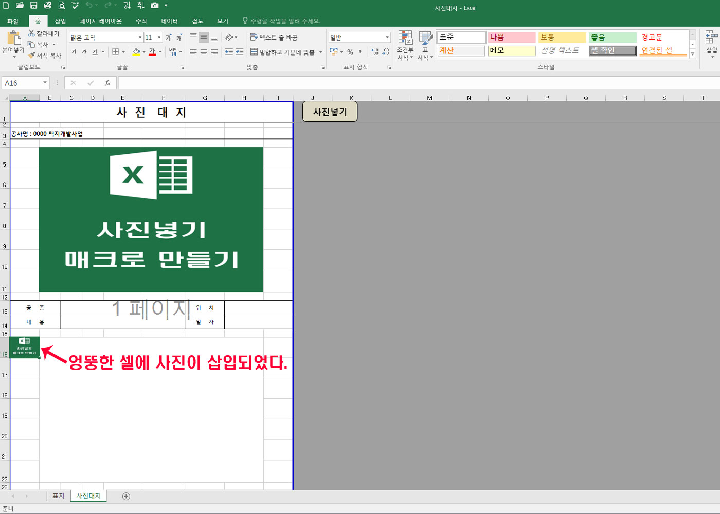 - 엑셀 사진대지