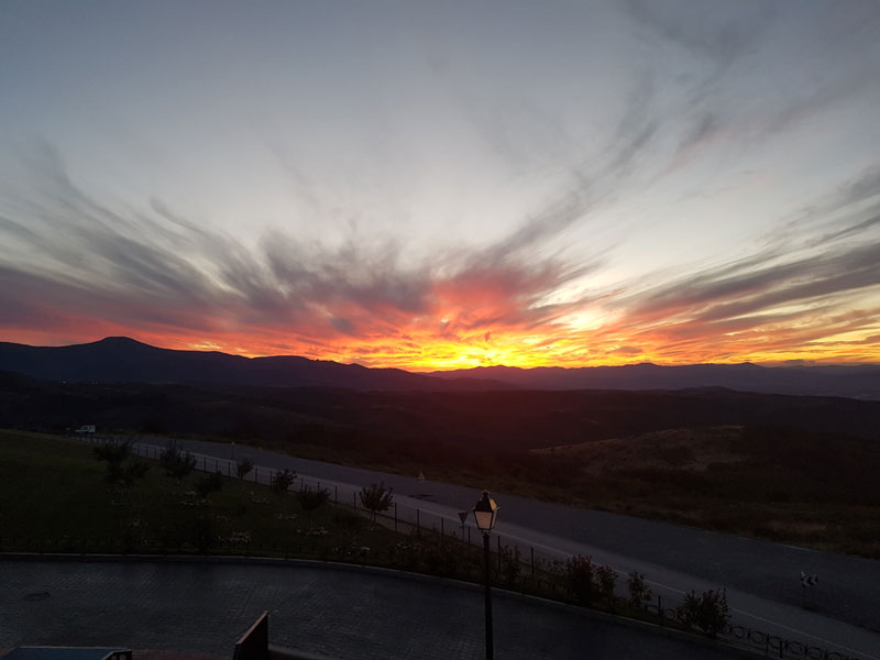 산속에 있는 엘 오세보라는 작은 마을에서 오늘을 마무리한다. 이곳은 영화 나의산티아고에서 주인공 하페가 자신만의 방식으로 하나님을 만난 후 감동의 눈물을 흘리던 곳이다. 최근에 신축한 시설이 아주 좋은 알베르게이다. 맛난 음식을 먹은 후 테라스에서 아름다운 석양을 바라보면서 내일을 기약한다.